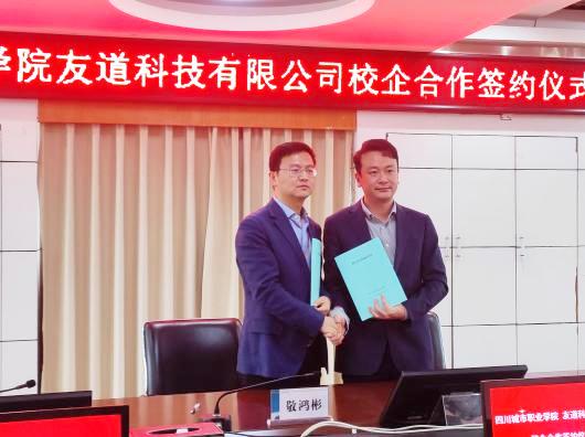 2022年10月27日下午,四川城市职业学院与友道科技有限公司校企合作签约仪式在四川城市职业学院隆重举行。为响应国家关于加强学校和企业合作的号召,充分发挥学校与企业双方优势,为社会、为企业服务的功能,更好的为社会、为企业培养高素质、高技能的应用型人才,同时也为大学生实习、实训、就业提供更多空间,在双方共同努力下,四川城市职业学院和友道科技有限公司进行了签约仪式。
